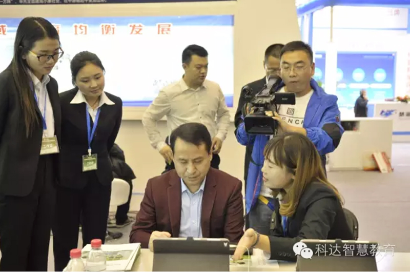华维智慧教学云平台首次亮相“2016年度基础教育信息化建设与应用成果展览”,吸引了数千名与会者驻足参观。陈红军校长随同来自全国各地的领导、专家、教育工作者一起参观基础教育信息化建设与应用成果展览,并向嘉宾介绍了科达中学借助华维智慧教学云平台实现农村学子均享优质教育资源的成功案例,得到了现场嘉宾的一致好评。