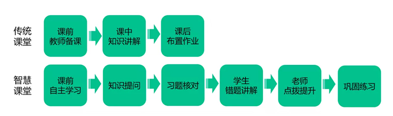 在北大培文的华维智慧课堂上,传统的教学流程“教师备课(课前)—知识点讲解(课中)--布置作业(课后)”已经改变,智慧课堂流程变成了“自主学习(课前)--知识提问--习题核对--错题讲解(课上)--点拨提升(课上)--个性化巩固练习(课后)”。