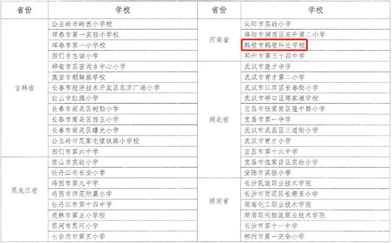 2019年3月,教育部对全国遴选出的候选区域和学校组织专家进行评审,最终全国共评出40个优秀区域、198所优秀学校。其中河南省入选的优秀学校仅4所,华维智慧教育学校联盟的鹤壁科达学校名列其中。